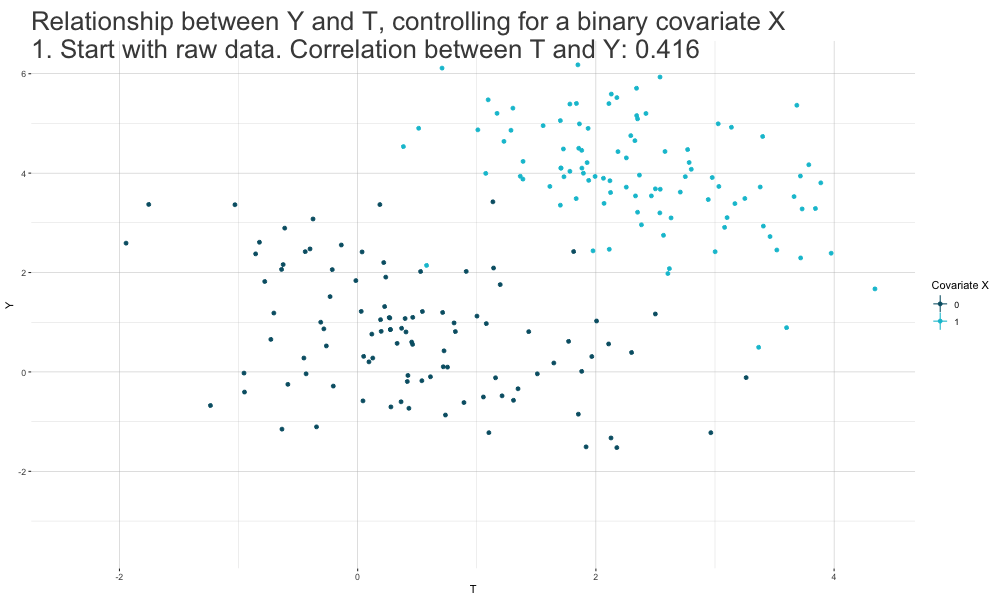 \(Y_i = \beta_0 + \beta_T T_i + \mathbf{\beta_{X}' X_i} + \epsilon_i\)