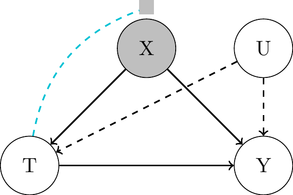\[ \begin{align*} \tau_{\text{ATE}} &= \mathbb{E}[Y_i(1)] - \mathbb{E}[Y_i(0)] \\ &= \mathbb{E}_{\mathbf{X, U}}[\mathbb{E}[Y_i|T_i=1, \mathbf{X_i, U_i}] - \mathbb{E}[Y_i|T_i=0, \mathbf{X_i, U_i}]] \\ & \color{#FF7E15}{\stackrel{?}{\approx}} \mathbb{E}_{\mathbf{X}}[\mathbb{E}[Y_i|T_i=1, \mathbf{X_i}] - \mathbb{E}[Y_i|T_i=0, \mathbf{X_i}]] \end{align*} \]