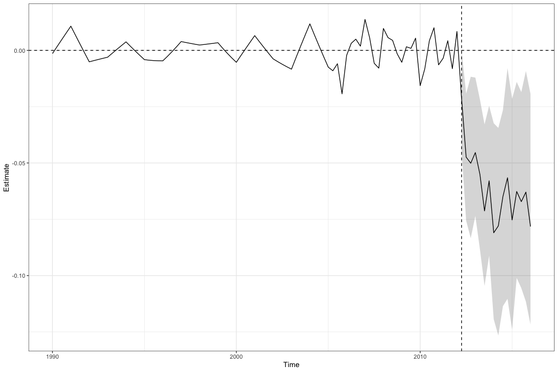 mean(dataprep.out$Y1plot[16:43] - (dataprep.out$Y0plot[16:43,] %*% synth.out$solution.w))